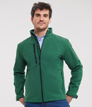 Three layer soft shell. 92% polyester/8% elastane woven outer. Performance membrane. Polyester micro fleece inner layer. Shower resistant 5000mm, windproof and breathable. Collar high full length zip with chin guard and inner zip guard. Mesh lined front panels. Right chest zip pocket. Two front zip pockets. Adjustable cuffs. Curved back drawcord hem. Access for decoration.
